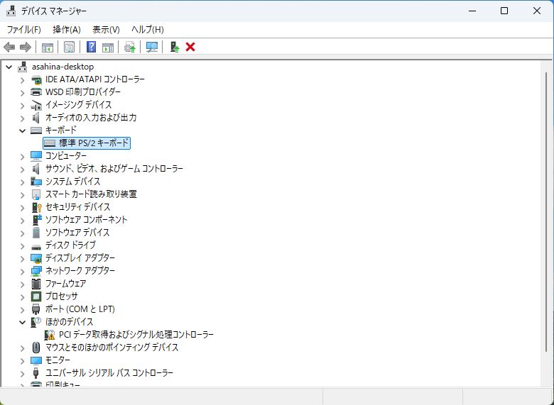 ログインした後はデバイスマネージャを起動し、キーボード項目のPS/2キーボードを選択します
